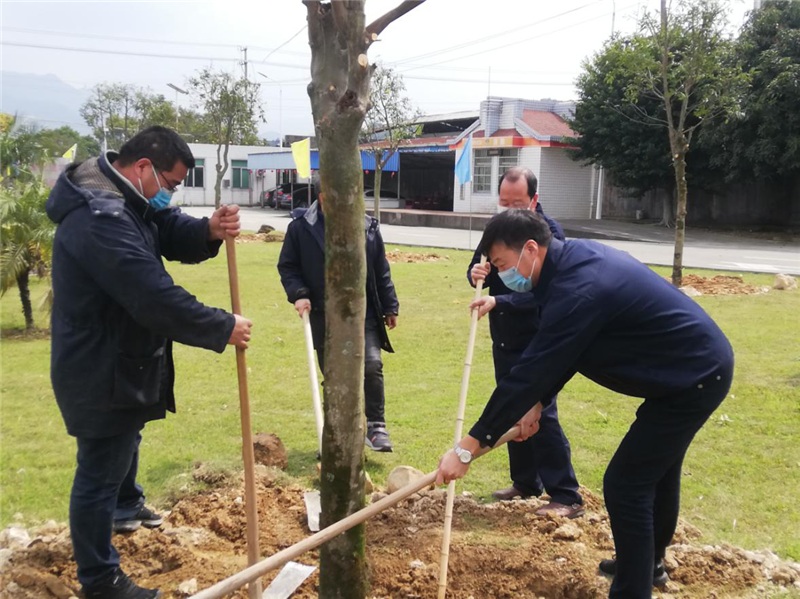 勞動(dòng)現(xiàn)場一派井然有序的歡樂景象。刨土、挖坑、填土分工明確,配合默契,干勁十足。經(jīng)過一番熱火朝天的勞動(dòng),一株株樹苗昂然挺立著,在陽光的照耀下透著生命的希望,在春風(fēng)的吹拂下律動(dòng)著生命的微光。