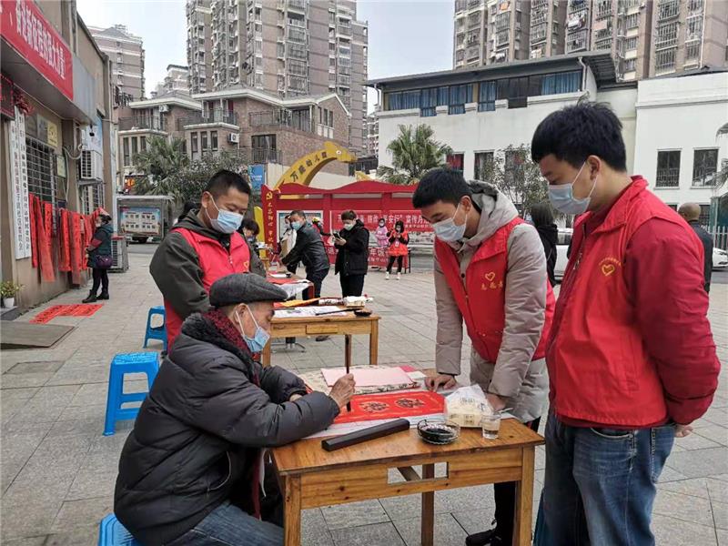 1月26日上午,在新春佳節(jié)即將到來之際建陽儲備庫志愿者積極參與社區(qū)開展“寒冬墨香暖人心,鄰里和諧幸福年”贈春聯(lián)活動。雖然現(xiàn)在是疫情防控期,但也不影響大家迎新春的熱情。志愿者們戴著口罩在社區(qū)門前空地忙碌起來,志愿者們搬桌子、倒墨、把春聯(lián)紙攤開讓書法老師揮毫潑墨,再把書法老師寫好的春聯(lián)晾干,忙的不亦樂乎?,F(xiàn)場書寫的春聯(lián)贈送給市民們,市民們愛不釋手,現(xiàn)場氣氛十分熱烈。