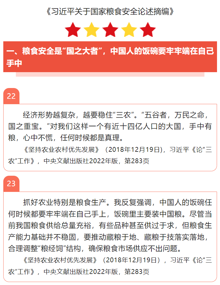《習(xí)近平關(guān)于國(guó)家糧食安全論述摘編》(6)