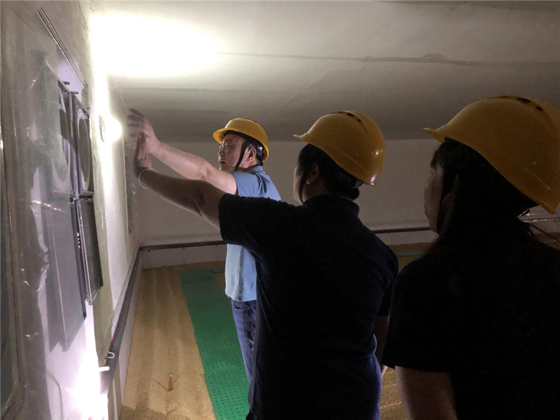 高副總一行到庫后,立即分為兩組深入庫區(qū),一組到光澤直屬庫P2、P5、P9號(hào)倉進(jìn)行儲(chǔ)糧安全督導(dǎo)檢查,另一組對(duì)正在進(jìn)行升級(jí)改造的信息化改造項(xiàng)目進(jìn)行實(shí)地查看。詳細(xì)了解儲(chǔ)糧的質(zhì)量、品質(zhì)控制指標(biāo)情況;倉房消防設(shè)施及消防安全情況;糧食出入庫管理、質(zhì)量監(jiān)測(cè)及視頻監(jiān)控等信息化的運(yùn)用改造情況。