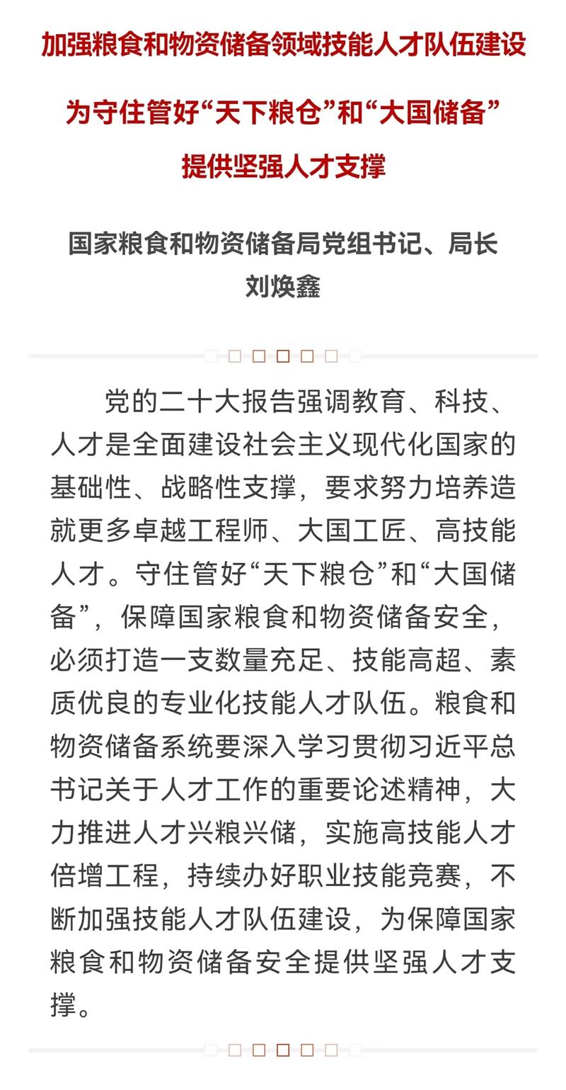 劉煥鑫:加強(qiáng)糧食和物資儲(chǔ)備領(lǐng)域技能人才隊(duì)伍建設(shè) 為守住管好“天下糧倉(cāng)”和“大國(guó)儲(chǔ)備”提供堅(jiān)強(qiáng)人才支撐