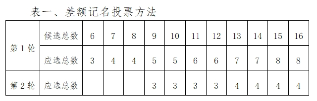 4.1.3每一輪投票,以得票多的方案當選為下一輪投票的候選方案,本輪應選總數(shù)即下一輪候選總數(shù)。遇票數(shù)相等不能確定名次時,應當就票數(shù)相等的候選方案再次投票,決出排序。