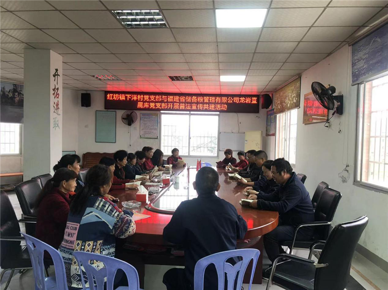 為鞏固學(xué)習(xí)貫徹習(xí)近平新時(shí)代中國(guó)特色社會(huì)主義思想主題教育成果,大力弘揚(yáng)憲法精神,結(jié)合在職黨員進(jìn)社區(qū)“雙報(bào)到”“四下基層”工作要求,12月5日上午,龍巖直屬庫(kù)黨支部與紅坊鎮(zhèn)下洋村黨支部開(kāi)展普法宣傳共建活動(dòng)。