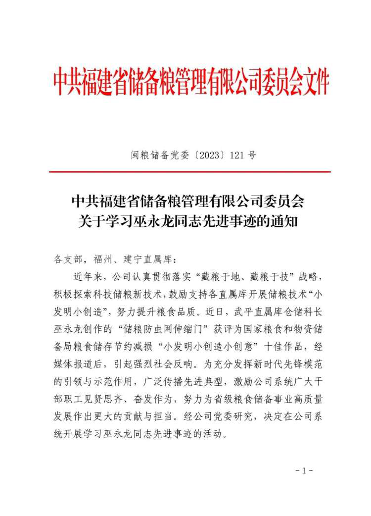學(xué)習(xí)活動中,龍巖庫支部書記、庫主任連德勝傳達(dá)了《中共福建省儲備糧管理有限公司委員會關(guān)于學(xué)習(xí)巫永龍同志先進(jìn)事跡的通知》文件精神,講述了巫永龍同志的先進(jìn)事跡。黨員干部紛紛表示,向榜樣學(xué)習(xí),立足崗位,切實(shí)履行職責(zé),用無私奉獻(xiàn)和汗水書寫省儲糧人的光芒。