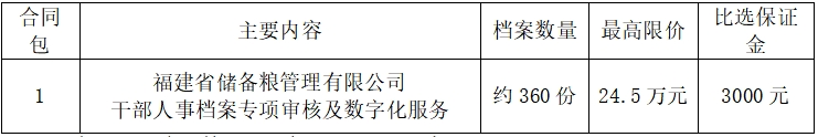 1.1 采購項目名稱:福建省儲備糧管理有限公司干部人事檔案專項審核及數(shù)字化服務(wù)采購項目