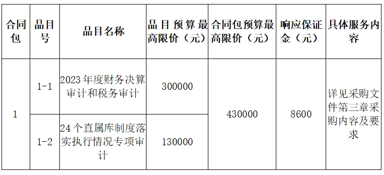 福建省天海招標有限公司受福建省儲備糧管理有限公司委托,對 2023年度財務決算審計和稅務審計及24個直屬庫制度落實執(zhí)行情況專項審計項目 下述服務進行公開比選,現(xiàn)歡迎國內合格的比選申請人前來提交密封的響應文件。