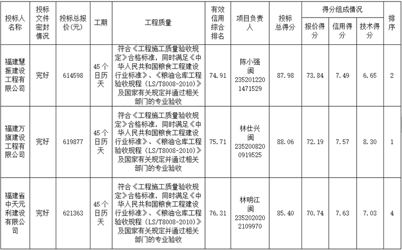 第一中標(biāo)候選人名稱:福建萬旗建設(shè)工程有限公司
