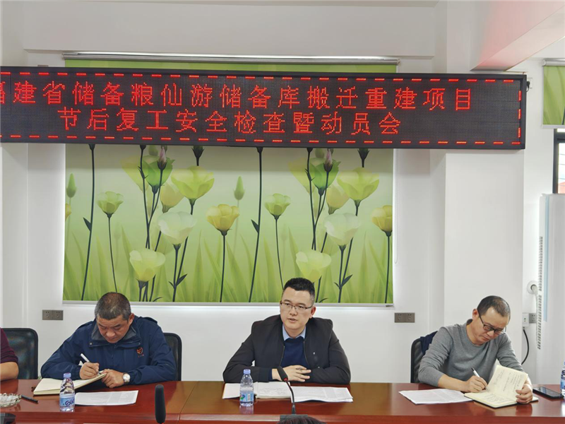 2月19日,仙游直屬庫籌建處召開2024年春節(jié)復(fù)工安全檢查暨動員會,動員全員迅速收心歸位,振奮精神鼓足干勁,統(tǒng)籌做好項目安全生產(chǎn)任務(wù),確保起步穩(wěn)、開門紅。省糧儲局掛職干部、仙游縣政府黨組成員出席會議并講話。
