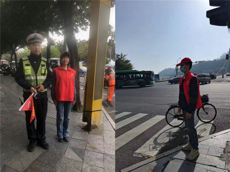 二組按區(qū)文明辦安排,到市區(qū)古樓街與商業(yè)城路口參加文明交通勸導(dǎo)活動,引導(dǎo)行人按交通指示燈安全過馬路;非機(jī)動車遇紅燈不超越停車線、不占斑馬線騎行;同時(shí)勸阻隨意闖紅燈橫穿斑馬線等不文明行為。在服務(wù)中,主動攙扶老人、殘疾人安全通過路口,并利用空余時(shí)間,撿起崗位周邊的煙頭垃圾,保持城市環(huán)境衛(wèi)生。