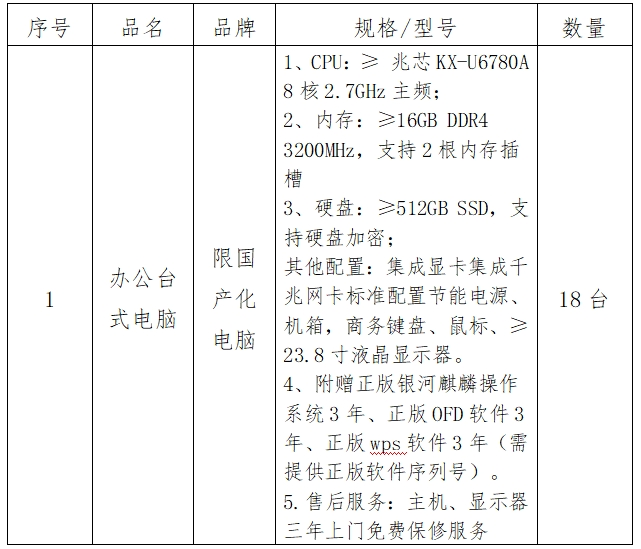 1.項(xiàng)目名稱(chēng):福建省儲(chǔ)備糧管理有限公司南安直屬庫(kù)辦公電腦購(gòu)置項(xiàng)目。