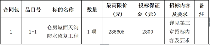 福建省卓誠招投標(biāo)代理有限責(zé)任公司受福建省儲備糧管理有限公司長樂直屬庫委托,對福建省儲備糧管理有限公司長樂直屬庫倉房屋面天溝防水修復(fù)工程進(jìn)行公開招標(biāo),歡迎合格的投標(biāo)人前來提交密封的投標(biāo)文件。