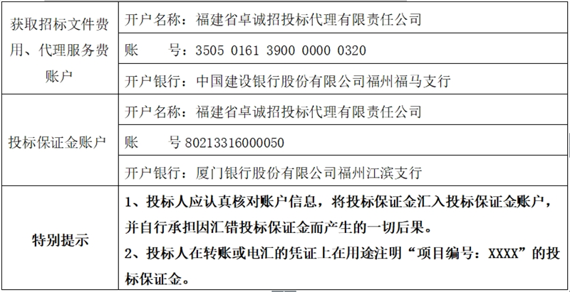 招標(biāo)代理機(jī)構(gòu):福建省卓誠招投標(biāo)代理有限責(zé)任公司