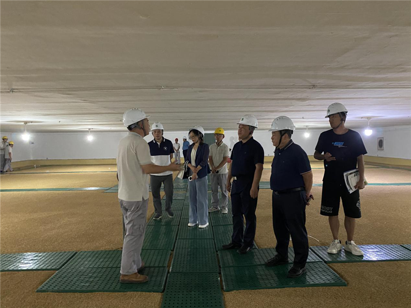 隨后,一行人先后參觀了庫區(qū)文化長廊、P45號倉綠色儲糧科保應用情況以及淺圓倉擴建項目建設,全面了解高標準糧食儲備庫設計、“四合一”技術的運用及低氧富氮、糧面綜合控溫、信息化管理系統(tǒng)。