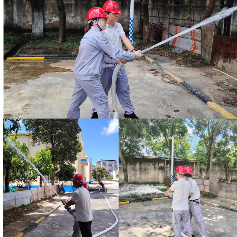 首先,安全員現(xiàn)場演示消防水槍、水帶以及消防栓的正確使用方式。全體員工“人人動手”,依次上場演練,參與“滅火”實戰(zhàn)。