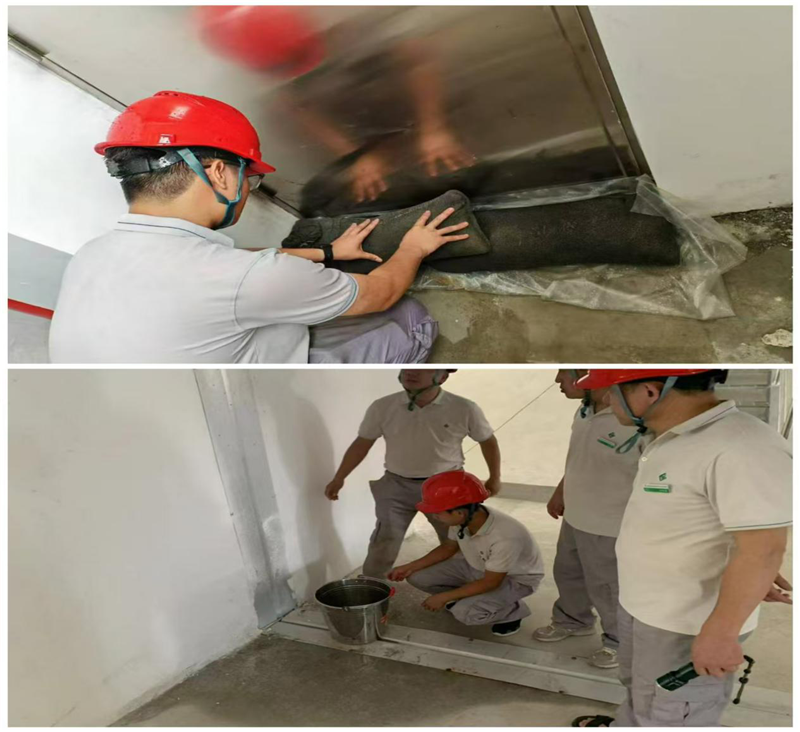 二是汛中風(fēng)雨較弱時(shí)對(duì)庫(kù)區(qū)倉(cāng)庫(kù)及附屬設(shè)施進(jìn)行再次檢查,其中發(fā)現(xiàn)個(gè)別倉(cāng)房伸縮縫存在漏水現(xiàn)象,已采取有效措施進(jìn)行處置。倉(cāng)房設(shè)備層大門(mén)采取薄膜、沙袋封堵措施,有效避免雨水流入。