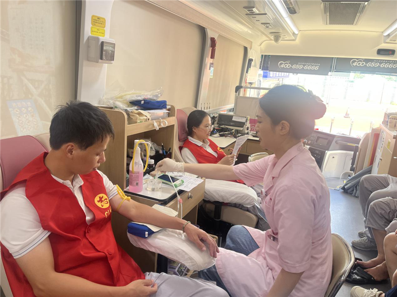 獻血活動開始,參與獻血的員工在現(xiàn)場醫(yī)護人員的引導(dǎo)下進行掃碼、身份登記、填寫表格、血樣化驗、現(xiàn)場抽血。獻血的同志中,有第一次獻血的“新面孔”,也有不少多次參加獻血的“老面孔”,他們井然有序,挽臂上前,用熱血拉起了傳遞愛心的紅色紐帶,為社會公益事業(yè)貢獻出自己的“一臂”之力。