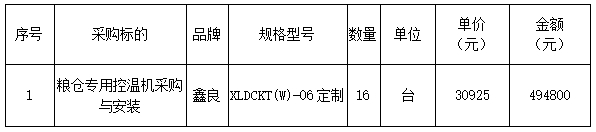 項目名稱:糧倉專用控溫機采購與安裝項目;