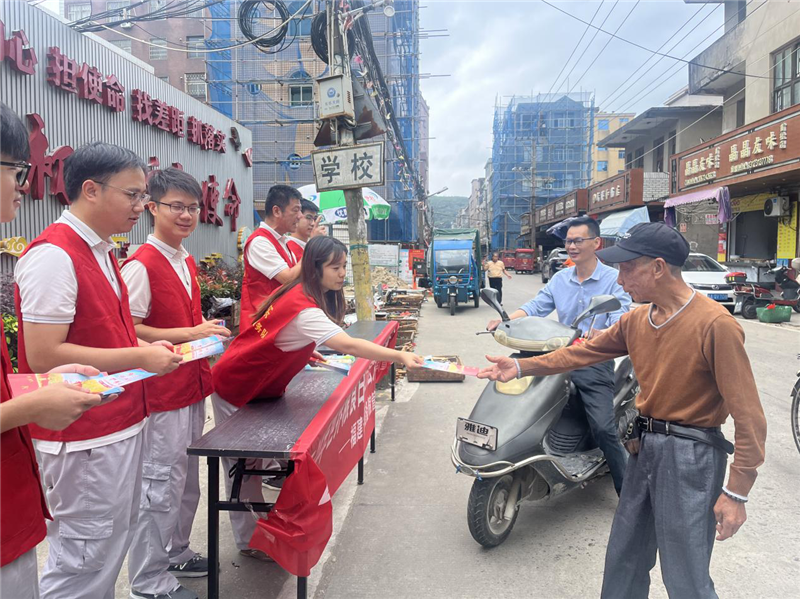 黨員帶頭組成宣傳小組,走進首祉村宣傳,在村委會門口拉起宣傳橫幅、放置宣傳手冊、搭建宣傳臺,向往來的村民發(fā)放宣傳單、普及糧食安全知識。