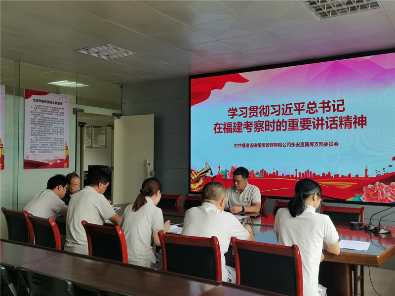 10月22日上午,永安直屬庫黨支部組織召開學(xué)習(xí)貫徹習(xí)近平總書記在福建考察時的重要講話精神專題會議,傳達(dá)學(xué)習(xí)習(xí)近平總書記10月15日至16日在福建考察時的重要講話精神及省委、全省領(lǐng)導(dǎo)干部大會、省政府黨組、省發(fā)改委黨組、省糧儲局黨組及公司黨委會議精神。