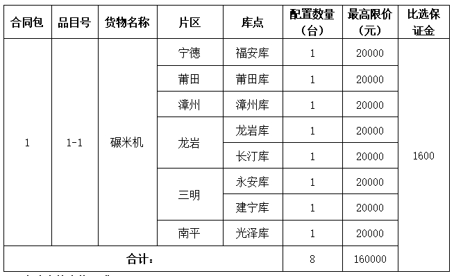 項(xiàng)目名稱:福建省儲備糧管理有限公司碾米機(jī)采購項(xiàng)目