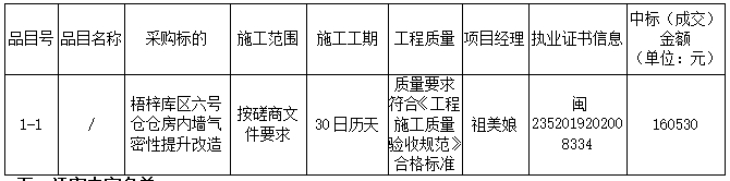 二、項目名稱:梧梓庫區(qū)六號倉倉房內(nèi)墻氣密性提升改造
