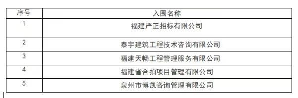 福建省儲備糧管理有限公司南安直屬庫關(guān)于公開征集招標代理機構(gòu)的比選活動于2024年12月02日15時00分在泉州經(jīng)濟技術(shù)開發(fā)區(qū)德泰路328號萬興大廈五樓501室會議室舉行,現(xiàn)將比選結(jié)果公示如下: