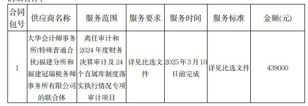 離任審計(jì)和2024年度財(cái)務(wù)決算審計(jì)及24個(gè)直屬庫(kù)制度落實(shí)執(zhí)行情況專項(xiàng)審計(jì)項(xiàng)目成交結(jié)果公告