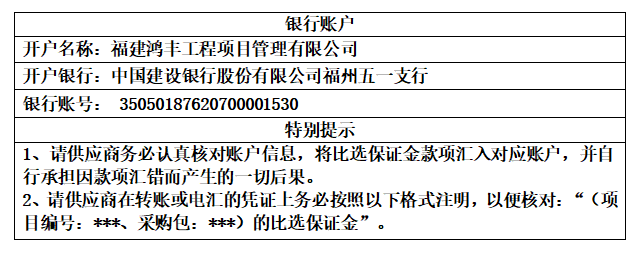 11、有關本項目的相關信息(包括采購文件若有修改補充),福建鴻豐工程項目管理有限公司將通過以下媒介發(fā)布通知,請潛在比選申請人隨時關注相關網(wǎng)站,以免錯漏重要信息。