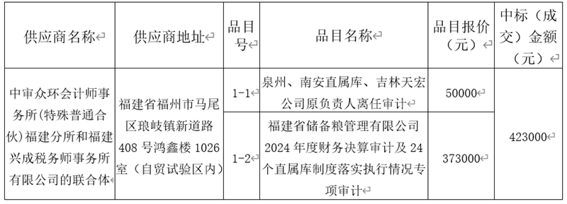 中審眾環(huán)會計師事務(wù)所(特殊普通合伙)福建分所和福建興成稅務(wù)師事務(wù)所有限公司的聯(lián)合體:
