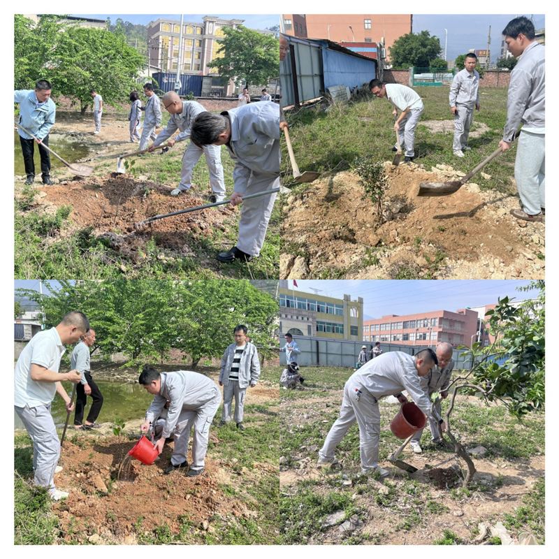 活動現(xiàn)場,大家熱情高漲,分工協(xié)作。一部分員工揮鍬鏟土、扶苗填坑,精心種下一棵棵新樹苗,有菠蘿蜜,樹葡萄等,為糧庫增添新綠;另一部分員工則對庫區(qū)內(nèi)原有的樹木進(jìn)行修剪,去除枯枝,讓樹木能更好生長;還有員工負(fù)責(zé)為樹木施肥,為它們補充養(yǎng)分?,F(xiàn)場氛圍積極熱烈,員工們的歡聲笑語與勞作的聲音交織在一起,充滿了生機與活力。
