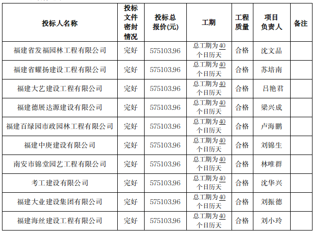 (1)第一中標候選人名稱:福建中庚建設有限公司