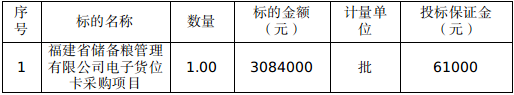 福建錦融項目管理有限公司采用公開招標方式組織福建省儲備糧管理有限公司電子貨位卡采購項目項目的采購活動,現(xiàn)邀請供應(yīng)商參加投標。