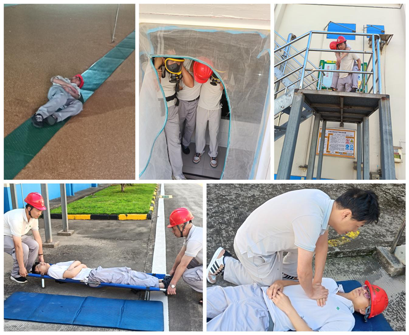 在實操演練環(huán)節(jié),隨著警報聲驟然響起,一場模擬有限空間作業(yè)人員暈倒的應急演練拉開帷幕。全體人員迅速響應,嚴格按照應急預案分工協(xié)作,第一時間開展現(xiàn)場警戒、通風換氣、救援實施等工作。在緊張有序的救援行動中,被困人員被快速救出并得到妥善處置,本次活動完成情況達到預期。