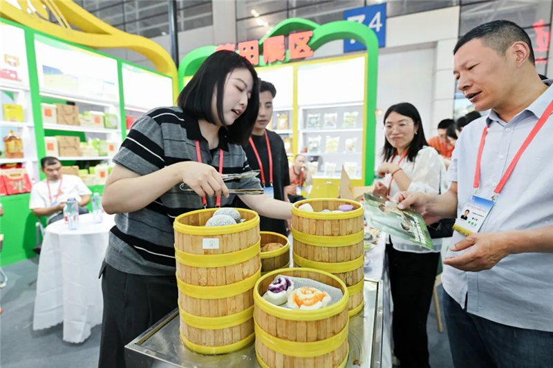 館內(nèi)最吸引人的,莫過于各家企業(yè)推出的試吃環(huán)節(jié)。福州展區(qū)里,中糧谷面帶來的包子饅頭面白色柔,松軟可口;莆田館的鑫福樂用實(shí)力詮釋面點(diǎn)的可能性,平時(shí)樸實(shí)無華的米面產(chǎn)品與蔬果激情碰撞,成為了形態(tài)各異的小豬奶黃包、土豆叉燒包;泉州展區(qū)的煎餃香味誘人,汁水四溢;龍巖展區(qū)的黑芝麻糕、桂花糕將八珍好料與優(yōu)質(zhì)米面結(jié)合,口感厚實(shí),富有層次;三明展區(qū)內(nèi),廚神公司將灶臺(tái)邊的“煙火氣”帶到現(xiàn)場(chǎng),現(xiàn)烹現(xiàn)制的拌面拌粉口感勁道,油而不膩;寧德展區(qū)更是將魚丸肉片這道地地道道的福建傳統(tǒng)美食,搬上了活動(dòng)現(xiàn)場(chǎng),聞到這股鮮味,哪個(gè)福建人的DNA不動(dòng)呢?