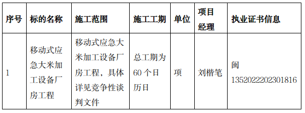 二、項(xiàng)目名稱:福建省儲備糧管理有限公司長樂直屬庫移動式應(yīng)急大米加工設(shè)備廠房工程
