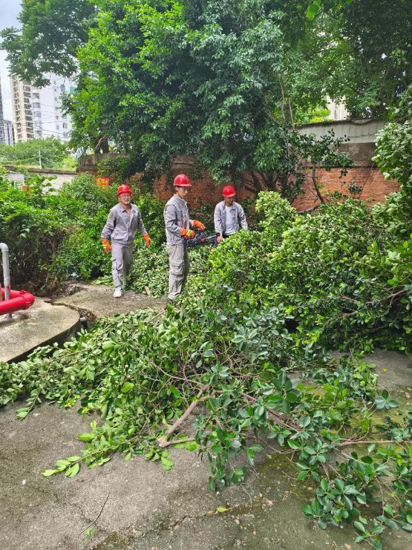 全體人員對(duì)庫(kù)區(qū)所有樹木開展全面、細(xì)致排查,將生長(zhǎng)態(tài)勢(shì)不穩(wěn)定、可能存在安全隱患的樹木進(jìn)行加固處理和樹木修剪清掘作業(yè),并清運(yùn)倒伏樹木殘枝,消除潛在隱患。