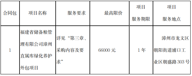 一、項目名稱:福建省儲備糧管理有限公司漳州直屬庫綠化養(yǎng)護外包項目
