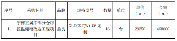 項目名稱:寧德直屬庫部分倉房控溫儲糧改造工程項目;