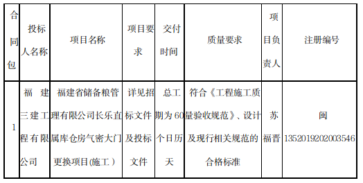 二、招標(biāo)項(xiàng)目名稱:福建省儲備糧管理有限公司長樂直屬庫倉房氣密大門更換項(xiàng)目(施工)