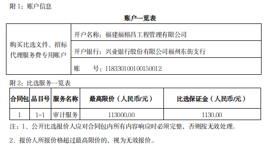 福建福榕昌工程管理有限公司受福建省儲(chǔ)備糧管理有限公司委托,對(duì)福建省儲(chǔ)備糧管理有限公司2024年度工資總額使用情況審計(jì)項(xiàng)目公開(kāi)比選(二次)(以下簡(jiǎn)稱(chēng):“本項(xiàng)目”)進(jìn)行公開(kāi)比選,通過(guò)公開(kāi)比選確定中選人,歡迎符合條件的報(bào)價(jià)人參加。
