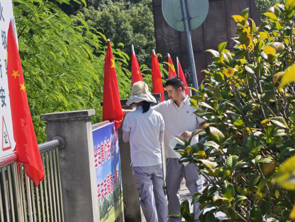 組織員工們?cè)趲?kù)區(qū)主干道、綜合樓一樓大廳等懸掛國(guó)旗、彩旗;綜合樓LED屏全天候滾動(dòng)播放“熱烈慶祝中華人民共和國(guó)成立七十六周年”宣傳標(biāo)語(yǔ),營(yíng)造國(guó)慶濃厚氛圍,讓每一位進(jìn)入庫(kù)區(qū)的人員都能直觀感受到濃厚的節(jié)日氛圍,激發(fā)愛國(guó)情懷。此外,還組織黨員與青年突擊隊(duì)員開展庫(kù)區(qū)環(huán)境整治行動(dòng),重點(diǎn)對(duì)庫(kù)區(qū)大門空地的雜草進(jìn)行集中清理?;顒?dòng)中,黨員同志帶頭沖鋒,青年隊(duì)員積極響應(yīng),大家分工協(xié)作、干勁十足,通過拔除雜草、清掃雜物,讓庫(kù)區(qū)大門周邊環(huán)境煥然一新。
