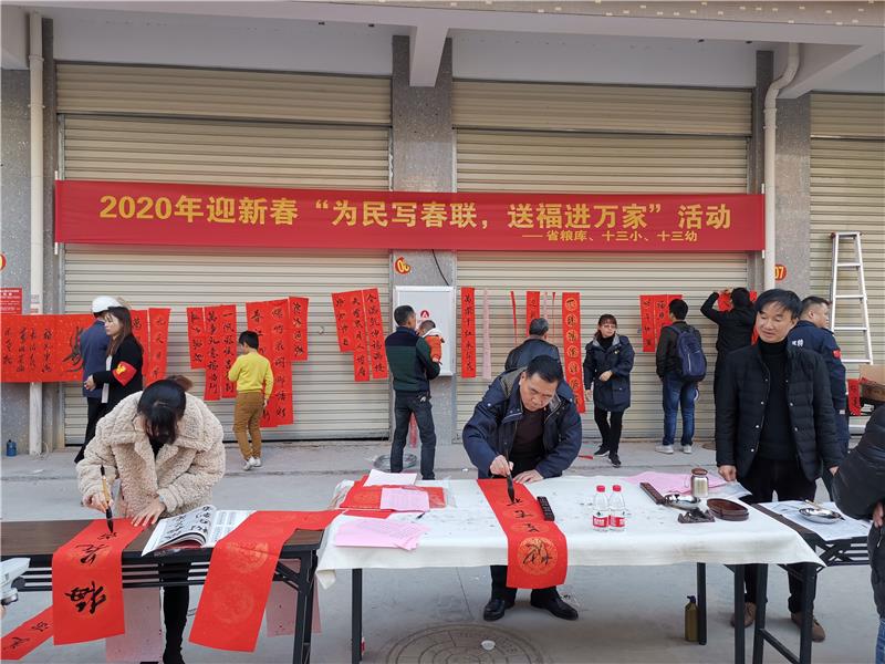 1月14日上午,安溪直屬庫(kù)攜手毗鄰的安溪縣第十三小學(xué)和第十三幼兒園在駐地光德村村委大樓開展“寫春聯(lián),送祝?!敝驹阜?wù)活動(dòng)。