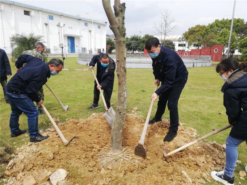 勞動(dòng)現(xiàn)場一派井然有序的歡樂景象。刨土、挖坑、填土分工明確,配合默契,干勁十足。經(jīng)過一番熱火朝天的勞動(dòng),一株株樹苗昂然挺立著,在陽光的照耀下透著生命的希望,在春風(fēng)的吹拂下律動(dòng)著生命的微光。