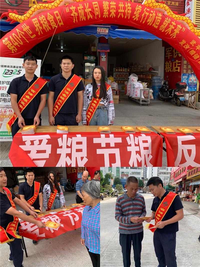 2020年10月16日是第40個(gè)世界糧食日,10月16日所在周是我國糧食安全宣傳周。10月16日上午,武平直屬庫會(huì)同武平縣發(fā)改(糧儲(chǔ))局、武平縣糧食儲(chǔ)備庫在武平縣軍糧供應(yīng)站組織開展以“齊成長、共繁榮、共持續(xù)。行動(dòng)造就未來”?!岸死沃袊埻?、共筑全球糧安”為主題的宣傳活動(dòng)。