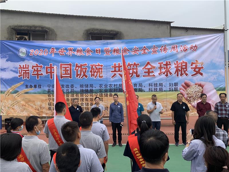 10月16日上午,寧德儲備庫聯(lián)合寧德市發(fā)改委(市糧儲局)、市農(nóng)業(yè)農(nóng)村局、市教育局、市科學(xué)技術(shù)局、市婦聯(lián)等14家單位,在福建寧德糧食儲備中心舉辦2020年世界糧食日和全國糧食安全宣傳周活動。本次活動圍繞“端牢中國飯碗 共筑全球糧安”主題,組織七都鎮(zhèn)中心小學(xué)學(xué)生進糧庫參觀學(xué)習(xí)。第一階段:由寧德庫樂大強主任主持,寧德市發(fā)改委四級調(diào)研員梁永致辭,企業(yè)代表宣讀愛糧節(jié)糧倡議書,有關(guān)單位開展宣傳活動;第二階段,在會議室,同學(xué)們聆聽了一堂關(guān)于“節(jié)約糧食 反對餐飲浪費”的小講座,倡導(dǎo)同學(xué)們勤儉節(jié)約,反對浪費的文明理念。第三階段,組織同學(xué)們參觀省庫裝有3000多噸稻谷的實倉,讓同學(xué)們近距離的接觸糧食,不少學(xué)生俯身抓起稻谷仔細端詳,紛紛感嘆“原來儲備糧是這樣存放的啊”。