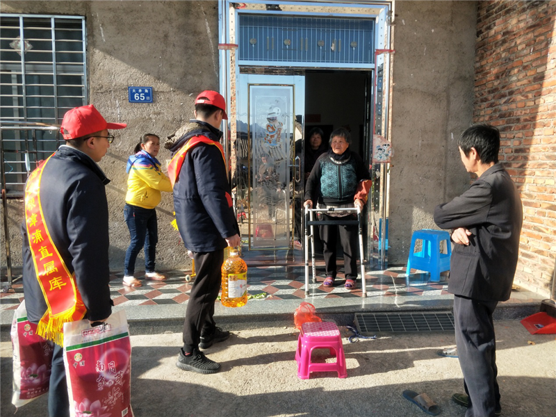 2021年1月13下午,為扛穩(wěn)企業(yè)社會責(zé)任關(guān)愛困難群眾,漳浦直屬庫組織部分員工到周邊的苑上村、山兜村開展扶貧助困活動,在苑上村村干部林賢鈞、山兜村村干部林江山的陪同下,給6戶困難群眾送去生活必須的大米、食用油。
