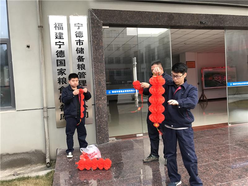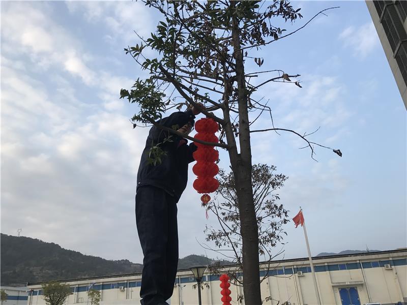 倉儲(chǔ)科組織員工對(duì)庫區(qū)進(jìn)行大掃除,用高壓水槍徹底清洗去倉庫四周的灰塵,讓整個(gè)庫區(qū)煥然一新。辦公室召集員工布置裝飾庫區(qū),在一樓大廳前高高掛起大紅燈籠,庫區(qū)四周的樹枝上掛上五連串紙燈籠。辦公樓懸掛“新年快樂”拉花,粘貼“恭喜發(fā)財(cái)”、“大吉大利”等福貼,給庫區(qū)增添了十足的年味兒,讓員工在溫馨、和諧的環(huán)境中歡度春節(jié)。