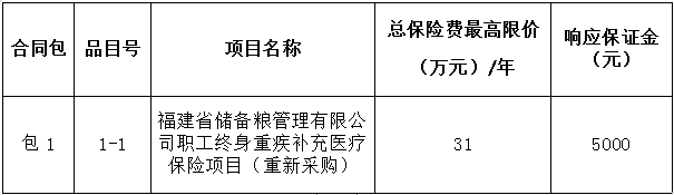 1.1 采購(gòu)項(xiàng)目名稱:福建省儲(chǔ)備糧管理有限公司職工終身重疾補(bǔ)充醫(yī)療保險(xiǎn)項(xiàng)目(重新采購(gòu))