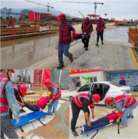 防汛抗洪演練分為搶險(xiǎn)救援組、治安保衛(wèi)組、醫(yī)療救護(hù)組、后勤保障組、效果評(píng)估組。以“仙游儲(chǔ)備庫(kù)項(xiàng)目施工場(chǎng)地正在進(jìn)行工作塔深基坑作業(yè),仙游當(dāng)?shù)?/span>連續(xù)強(qiáng)降雨,雨水開始向施工現(xiàn)場(chǎng)倒灌,積水嚴(yán)重,現(xiàn)場(chǎng)值班人員在巡檢時(shí)受傷”為模擬場(chǎng)景進(jìn)行演練。各應(yīng)急小組人員行動(dòng)迅速,第一時(shí)間對(duì)受傷人員進(jìn)行基礎(chǔ)救治,轉(zhuǎn)移到安全地帶,同時(shí)對(duì)施工現(xiàn)場(chǎng)重要工具、材料和設(shè)備進(jìn)行轉(zhuǎn)移,對(duì)工作塔深基坑入水口處進(jìn)行防汛沙袋回填加固,架設(shè)移動(dòng)發(fā)電機(jī)發(fā)電利用水泵對(duì)積水處進(jìn)行抽水。整個(gè)演練過程規(guī)范嚴(yán)謹(jǐn)、緊張有序,嚴(yán)格按照應(yīng)急救援預(yù)案程序在規(guī)定的時(shí)間內(nèi)完成。