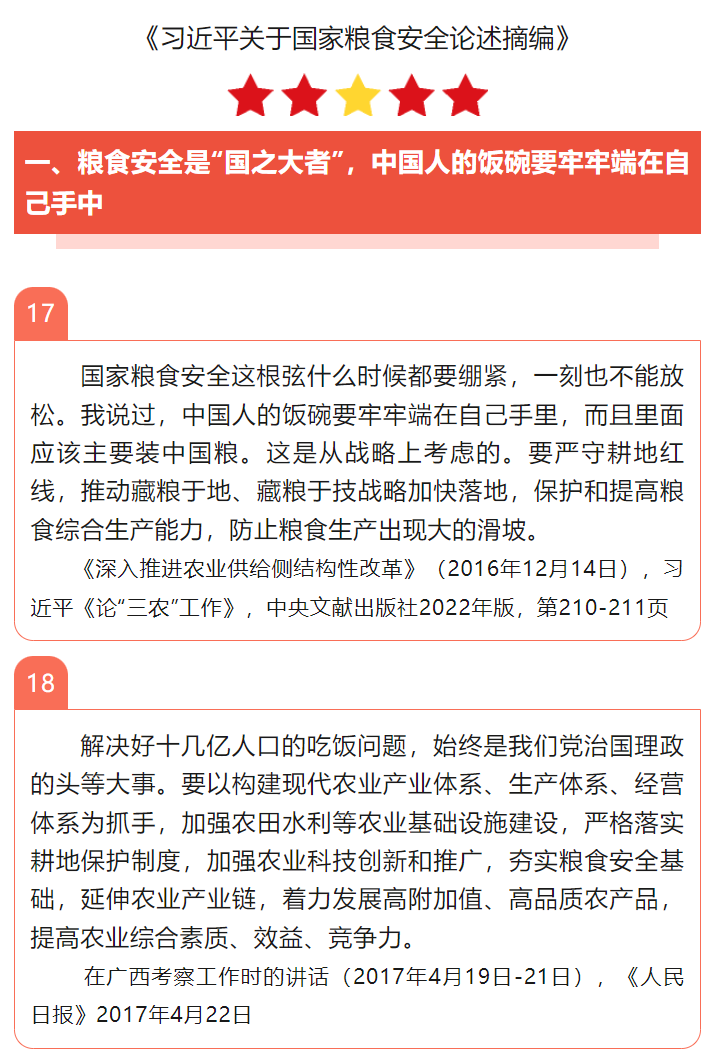 《習(xí)近平關(guān)于國家糧食安全論述摘編》